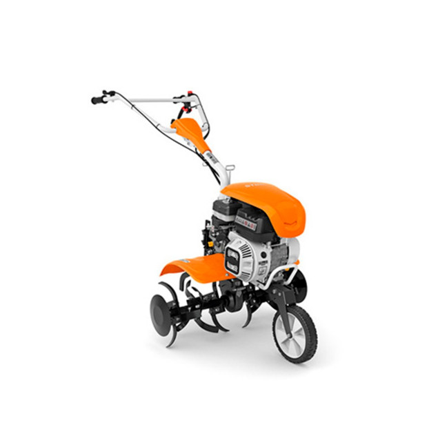 O novo motocultivador STIHL MH 610 possui alto desempenho para o preparo de solo em terrenos densos, equipado com um potente motor STIHL EHC de 4 tempos. Com 80 cm de largura de trabalho, a forma das lâminas permite misturar a terra com eficiência, cortando com facilidade raízes ou outro material vegetal.