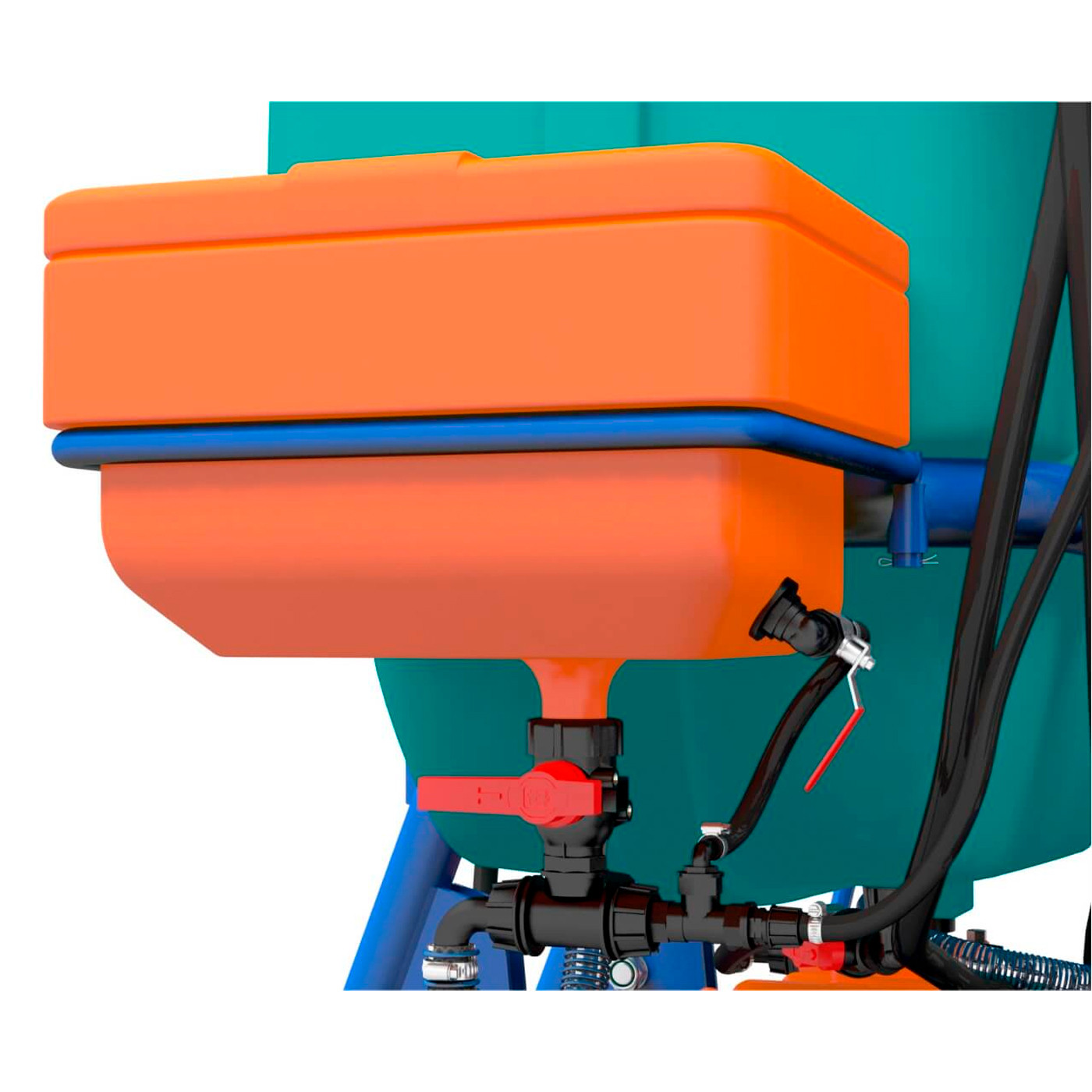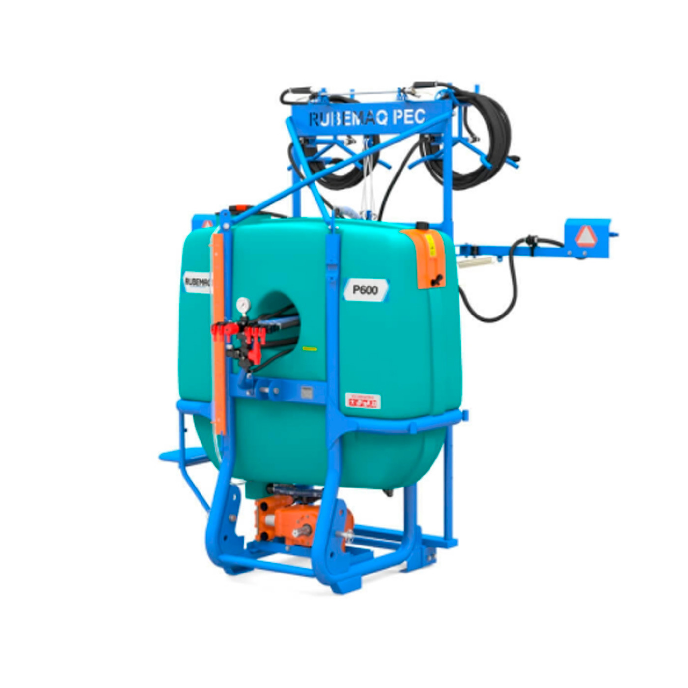 Pulverizador manual com tanque de 600 litros, bomba JP-75 litros/min, barramento manual de 2.20 metros, faixa de aplicação 10 metros, bicos pecuário, comando manual 6 seções, kit com duas pistolas e enroladores giratórios com 25 metros de mangueira cada, lava frasco na tampa do tanque, filtro principal com válvula, agitador hidráulico de calda e reservatório de água limpa.