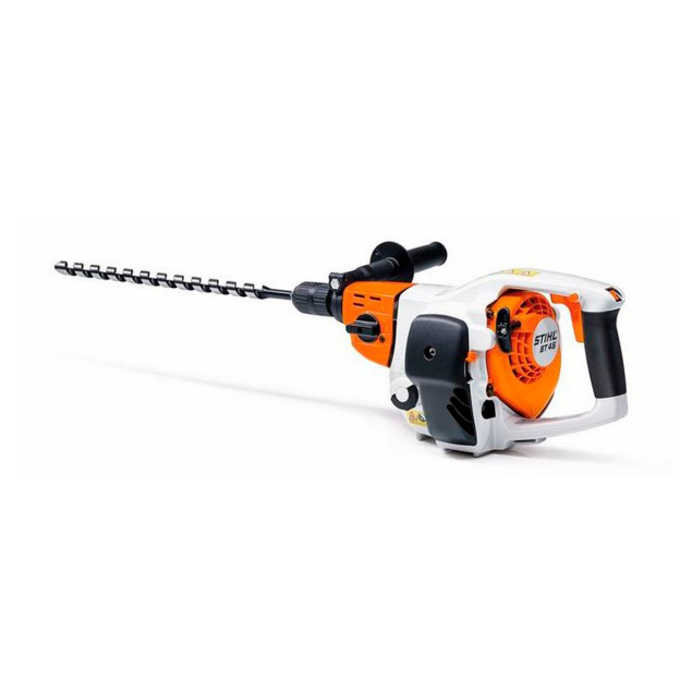 O perfurador de madeira e de solo STIHL BT 45, é uma ferramenta portátil e potente para trabalhos de perfuração. Possui comandos de fácil acesso e caixa de engrenagem com duas velocidades de perfuração com função reversa, o que possibilita a fácil retirada da broca em caso de travamento. Nas atividades em madeira é recomendado para construção de galpões, cercas, casas em geral, manutenção de postes de rede elétrica e dormentes de trilhos de trens. Na versão de solo, é ideal para plantio de mudas, coleta de amostra de solo e perfurações em geral.